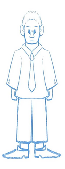 Brain is the antagonist. He is an ordinary accountant working in an office. Compared to the protagonist, he is tall and thin, and looks tired from the workload. Everything is in contrast to Bob.