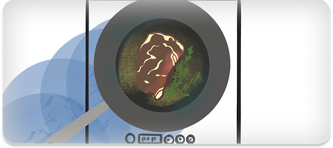 As a turning point, in contrast to the variety of sound effects used beginning, the background sound becomes much quieter toward the end, with only the ‘sizzling of oil’ in the pan. This effect makes the audience suddenly realize that the world the boy is in is actually a stove.